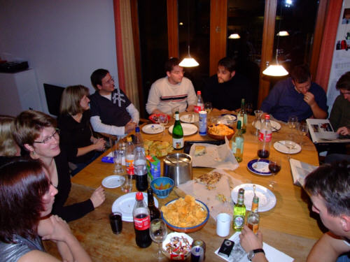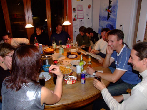 | Party auf dem Flur in der Jugendherberge in Wien. |